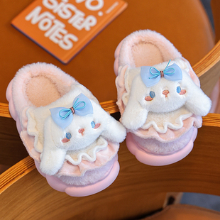 亲子宝宝女士包跟室内家居加绒保暖棉鞋 库洛米儿童棉拖鞋 女童冬季