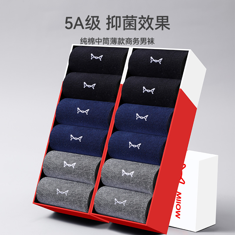 纯棉防臭抑菌透气黑色商务纯色男袜子 中筒袜秋季 猫人袜子男士 薄款