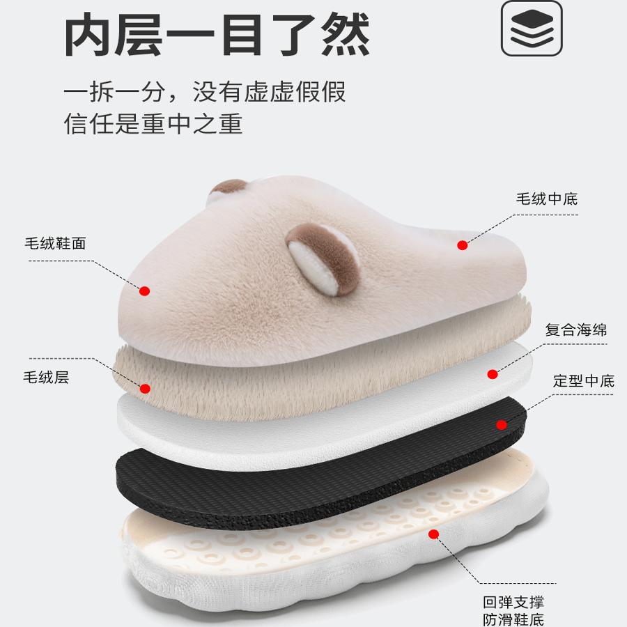情侣保暖室内家居冬天毛毛拖鞋 2025新款 男 女秋冬季 买一送一棉拖鞋