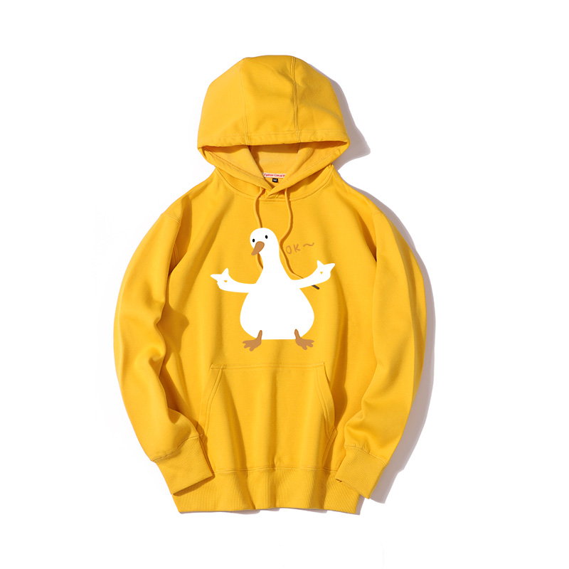 加绒连帽套头卫衣 秋季 秀洛ok鸭柯尔鸭大白鸭子帽衫 衣服卡通情侣装