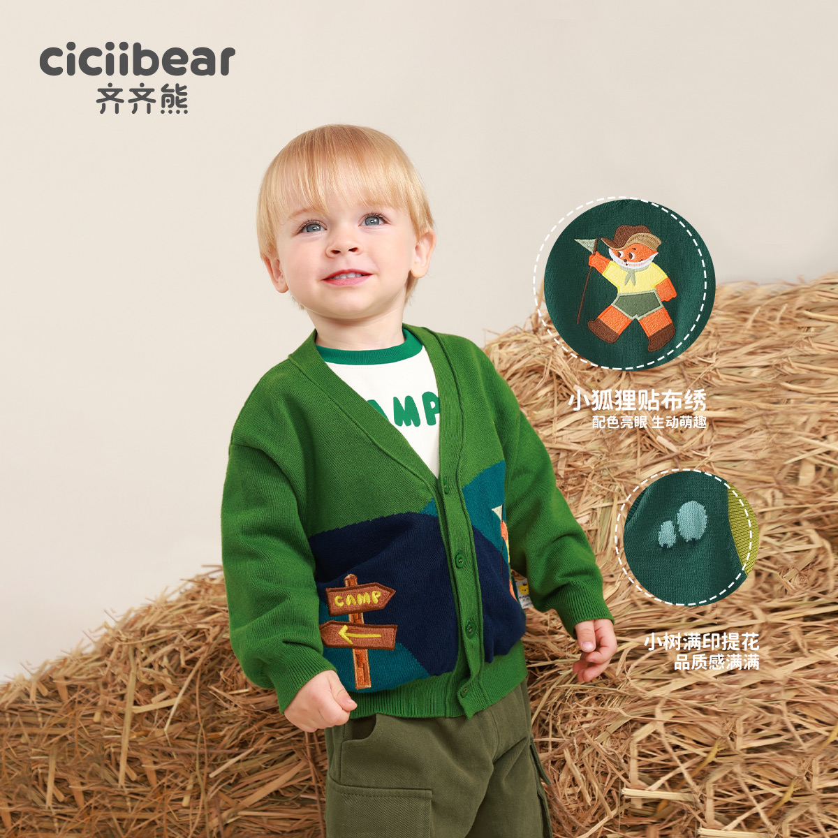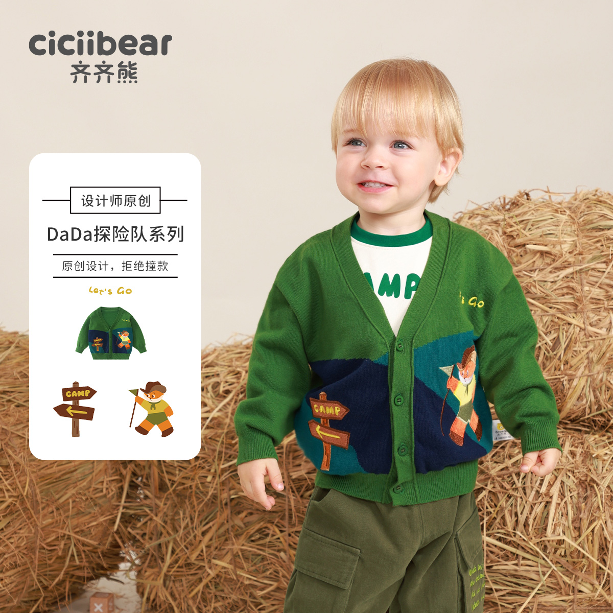 儿童毛衣外套宝宝秋装 春秋款 齐齐熊男童针织开衫 潮 DaDa探险队