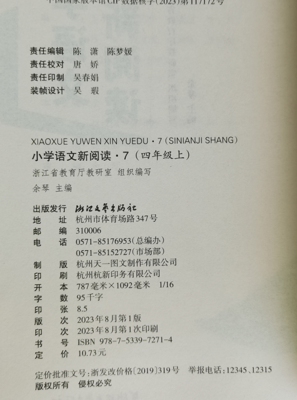 社 正版 小学语文新阅读7四年级上册浙江文艺出版 2023年新版 经浙江省中小学教辅材料评议2023学年小学生4年级上册语文阅读 代购