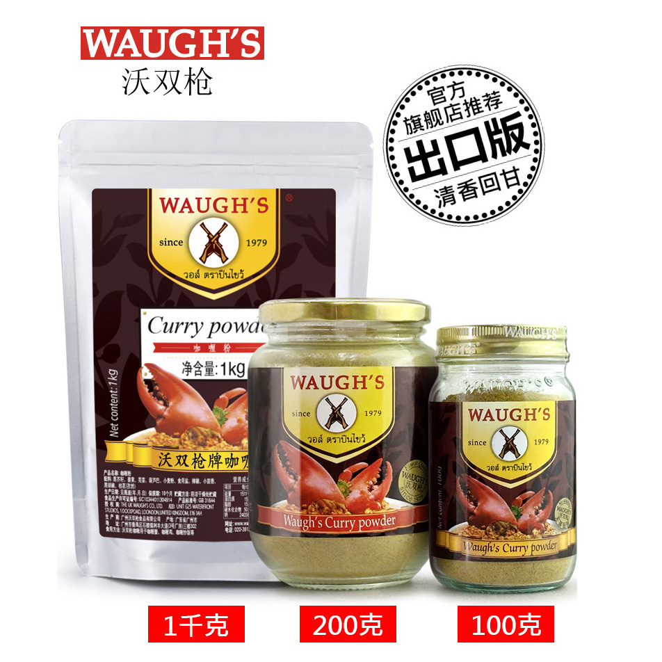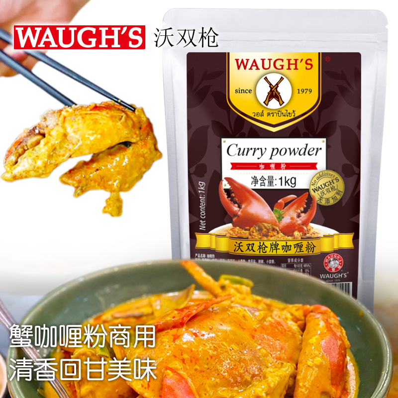 沃双枪商用装 咖哩粉1kg蟹咖喱粉英国WAUGHS授权英伦风清香黄咖喱