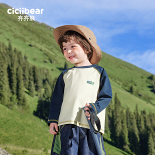 春秋款 齐齐熊男童t恤长袖 宝宝印花上衣儿童运动衣童装 3S速干衣