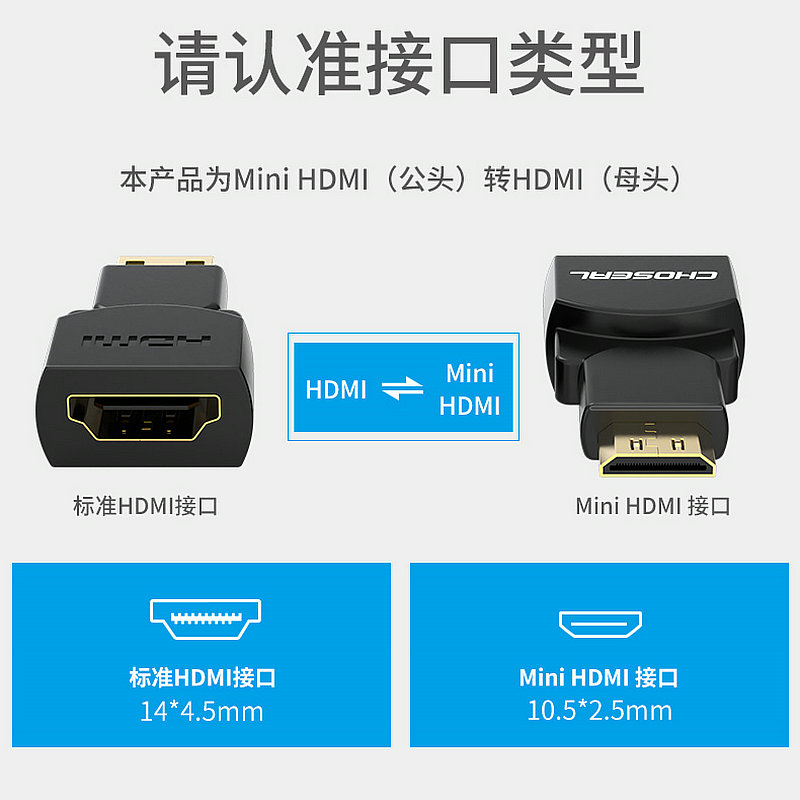 大转小 秋叶原 HDMI转接头 标准HDMI线转mini 迷你HDMI接头 Q943