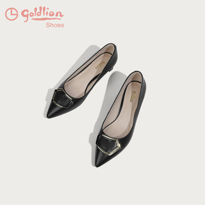 女 百搭浅口方扣真皮尖头通勤套脚单鞋 金利来粗跟单鞋 女2024秋季