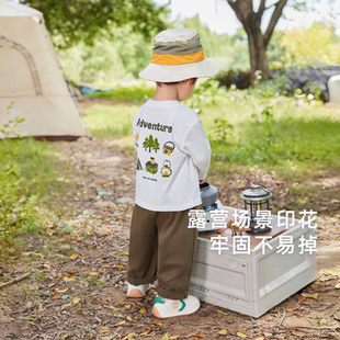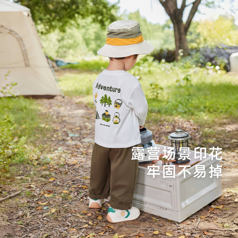 t恤2025儿童秋季 男童长袖 圆领衣服小童白色秋宝宝上衣 5A抗菌