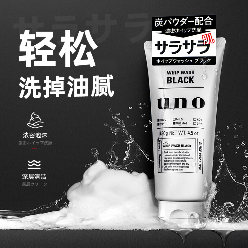 洁面乳黑色2支装 UNO男士 专用洗面奶控油祛痘去黑头除螨虫活碳保湿