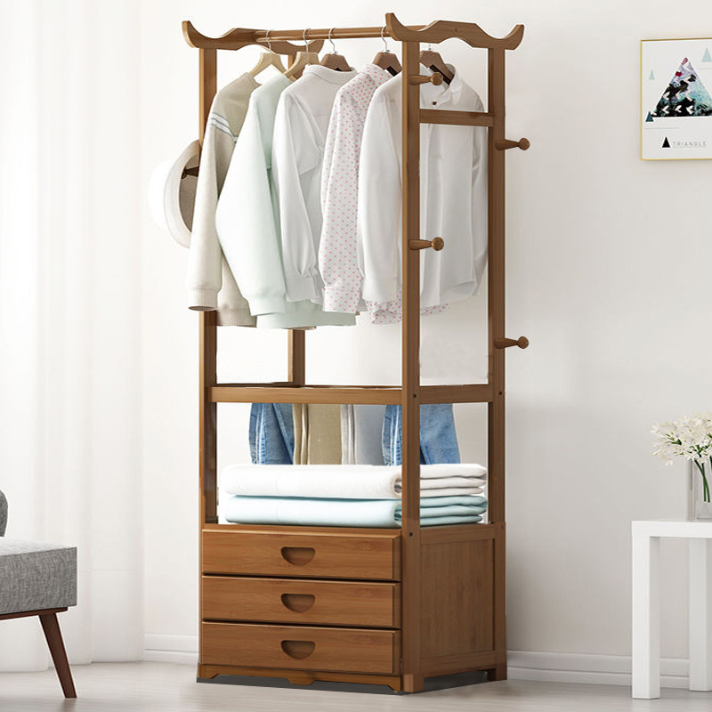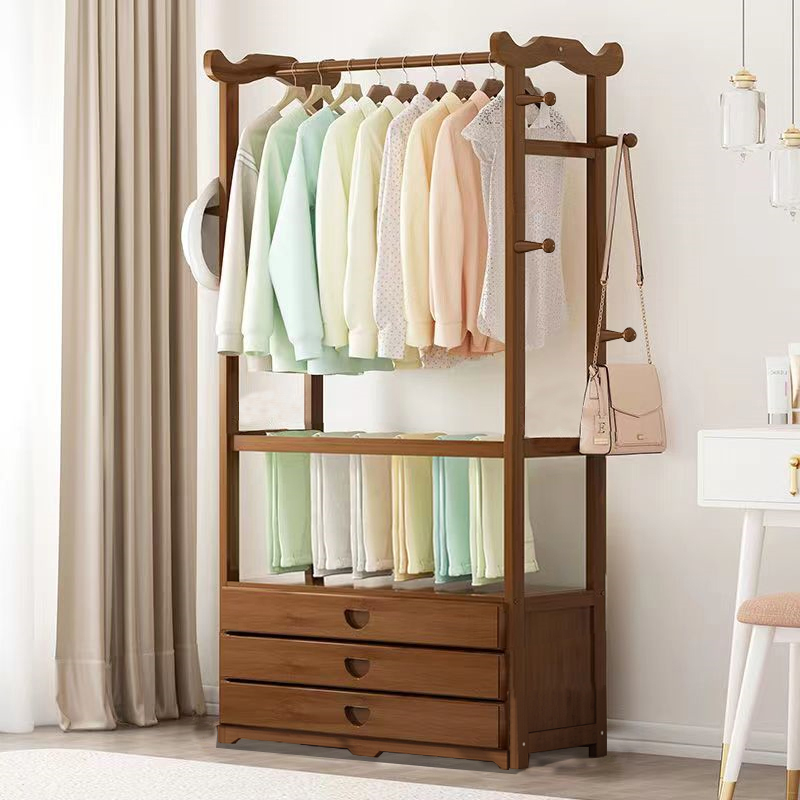 实木衣架落地衣帽架卧室家用挂衣架简易立式 榉木大学生宿舍挂包架