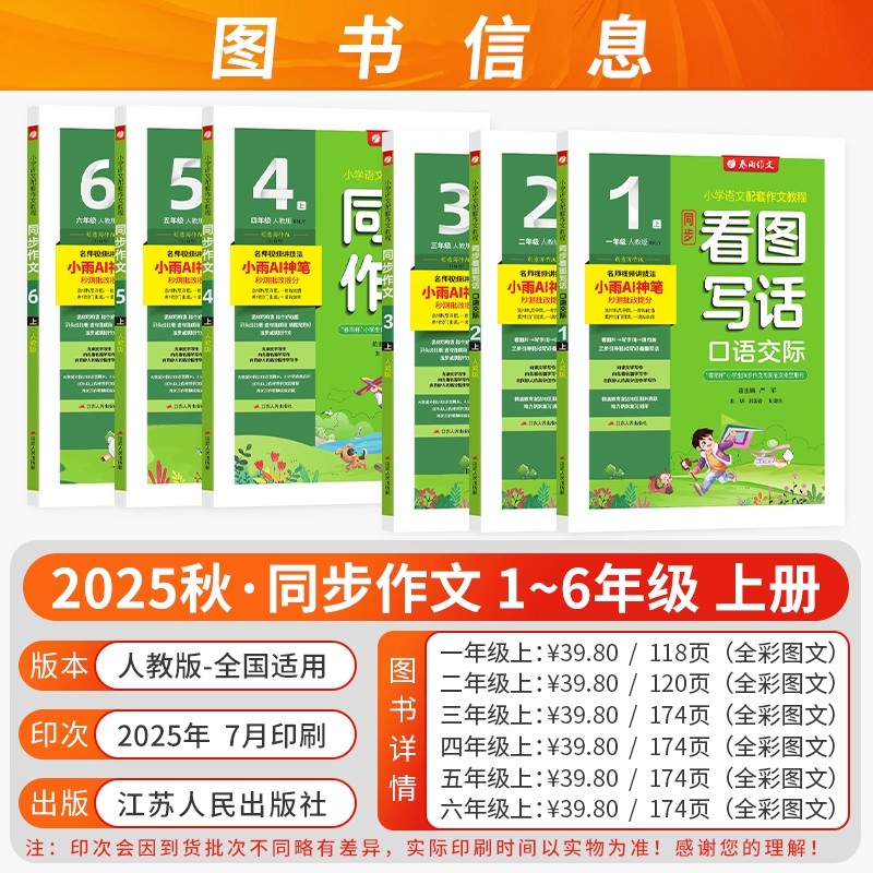 小学语文配套作文教程名师视频同步阅读拓展训练实验班 RJ版 2025秋春雨同步作文口语交际小学一二三四五六年级上下册人教版 浙江专版