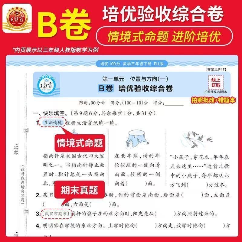 测试卷 AB卷一年级试卷测试卷全套下册上册二三四五六年级人教语文北师苏教数学英语单元 2025秋 王朝霞试卷培优一百分100分小学单元