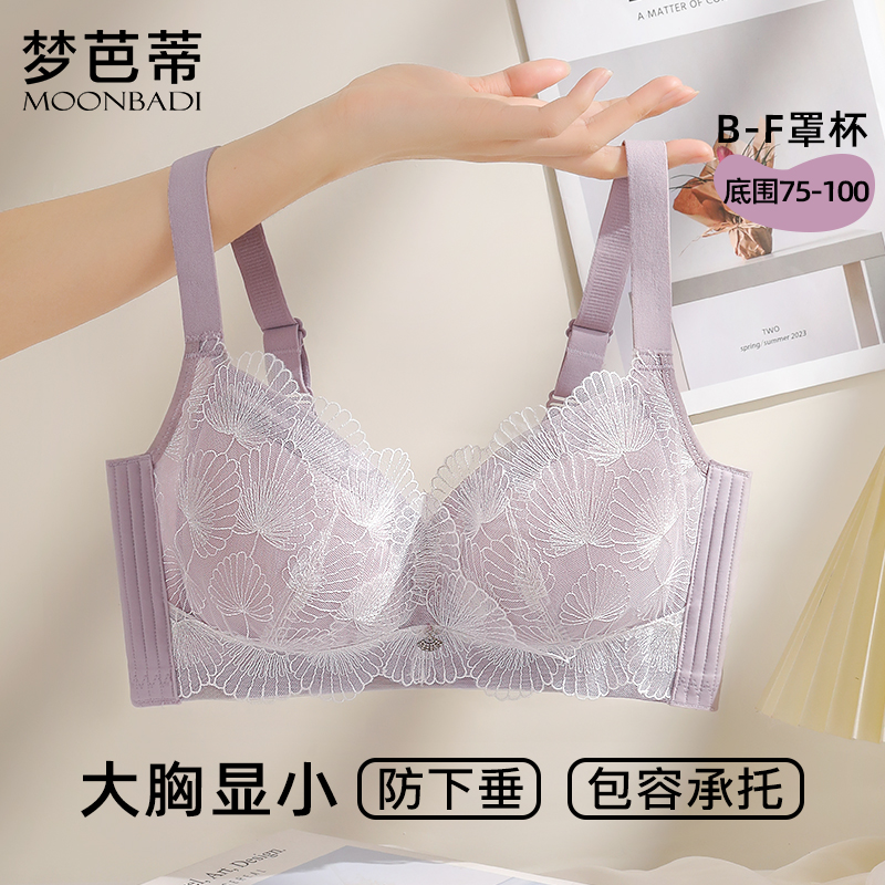 梦芭蒂大胸显小女士内衣女无钢圈全罩杯胖mm收副乳防下垂文胸罩