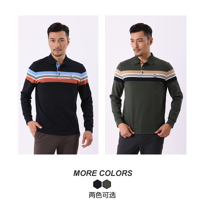 100%长绒棉 梦特娇春秋翻领纯色时尚 5A抗菌 长袖 棉T恤Z 男polo衫