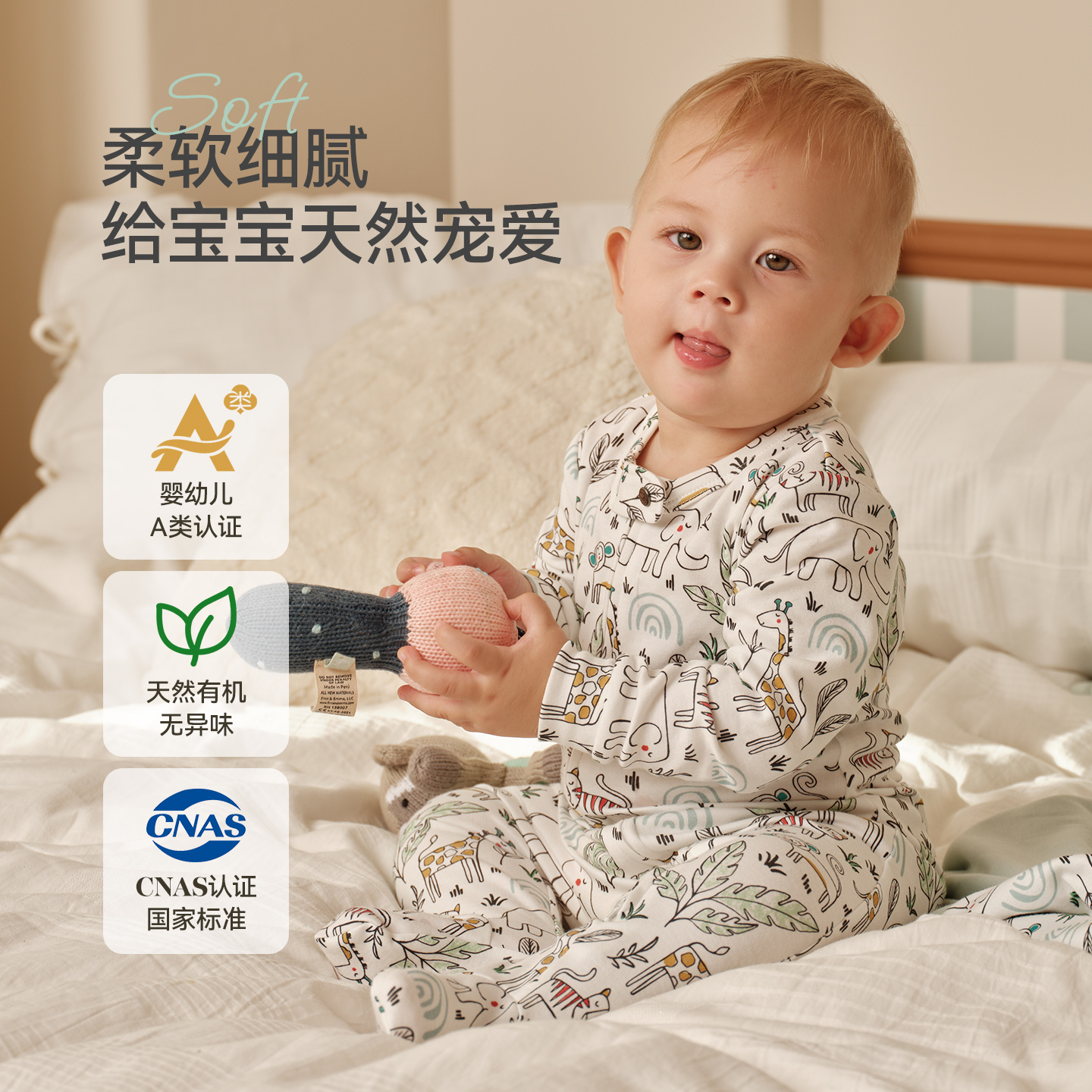 有机棉 连体包脚睡衣婴幼儿家居服爬服连体衣四季 Finn Emma长袖