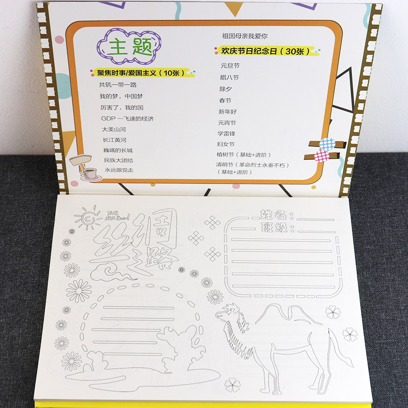 手抄报模板快乐校园黑板报装 饰墙贴素材书小红帆趣味涂色基础手绘插画设计等小学生手抄报书籍大全校园主题节日教师节国庆精选