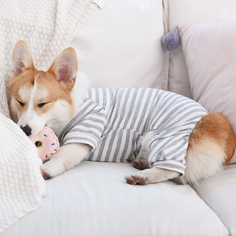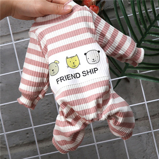 狗狗衣服条纹春秋装 泰迪比熊幼犬小型犬睡衣宠物四脚衣猫咪家居服