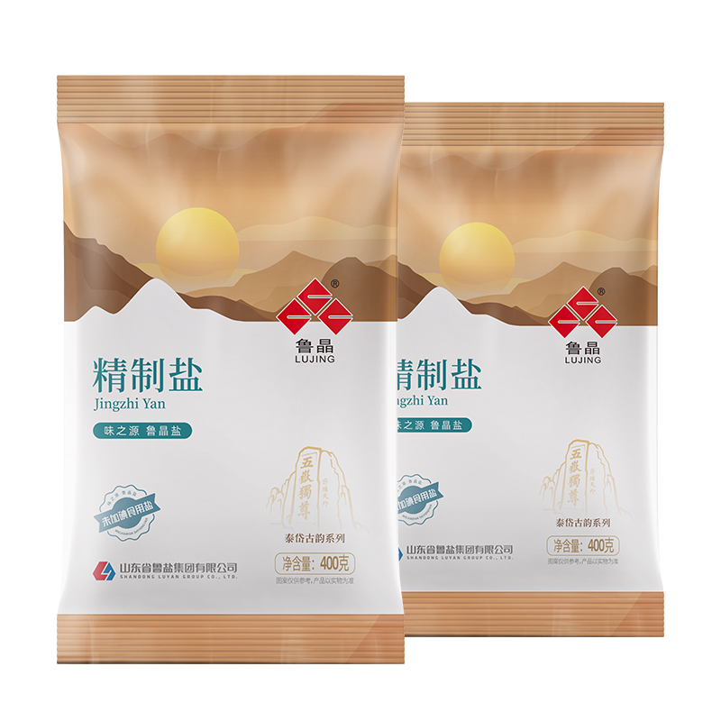 鲁晶未加碘精制盐400g 千米深井矿盐无碘盐细粒炒菜家用食盐 2袋