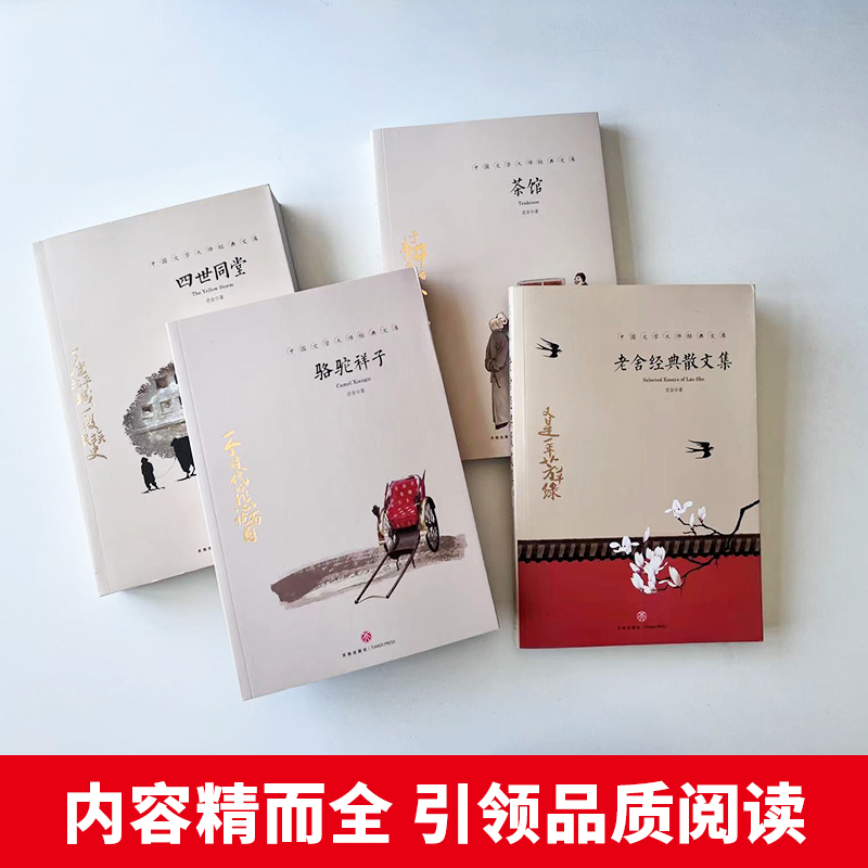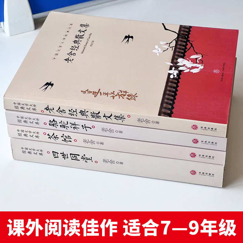 老舍经典 散文 4册 茶馆 中国文学大师经典 四世同堂 老舍 文库中小学生课外阅读书籍故事书名著 骆驼祥子