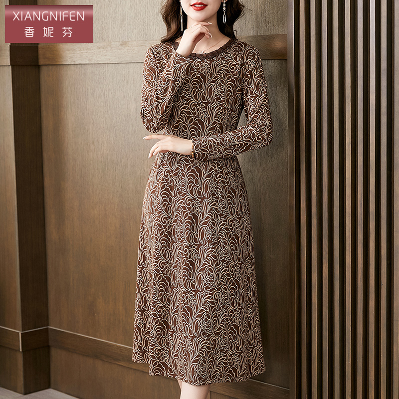 新款 连衣裙女士冬季 裙子气质显瘦小黑裙长裙 复古丝绒长袖 朗姿法式