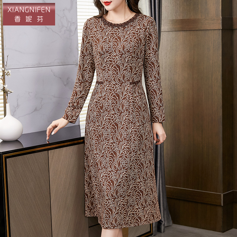 新款 朗姿法式 通勤长裙2025年秋季 连衣裙高级感中长款 复古a字衬衫