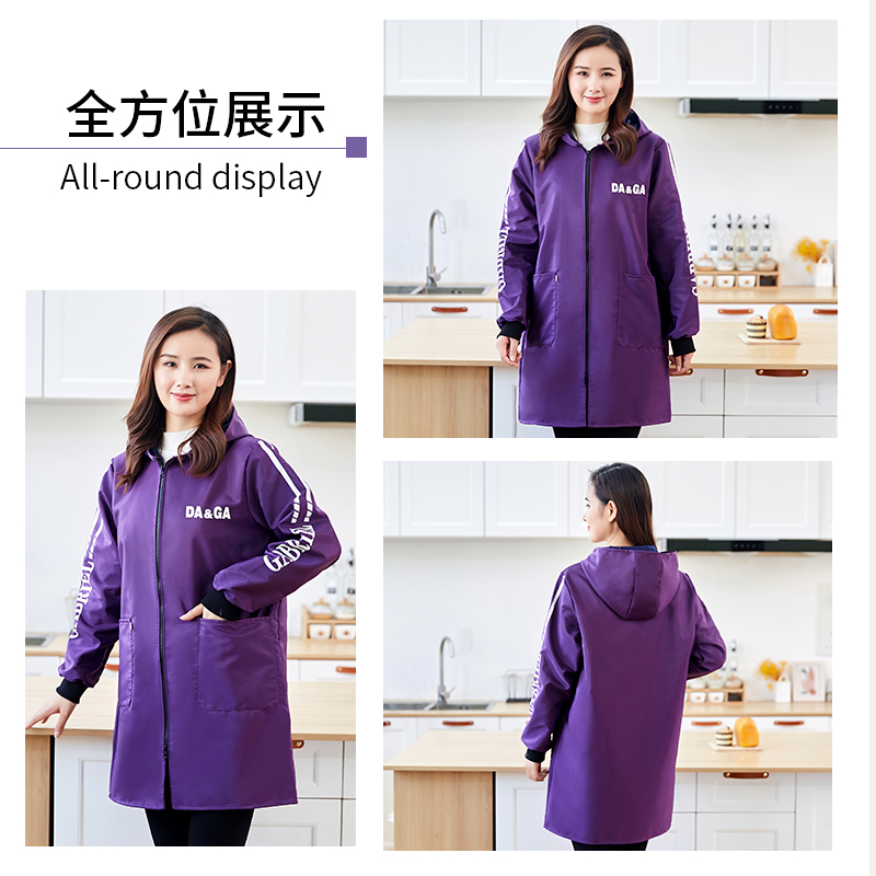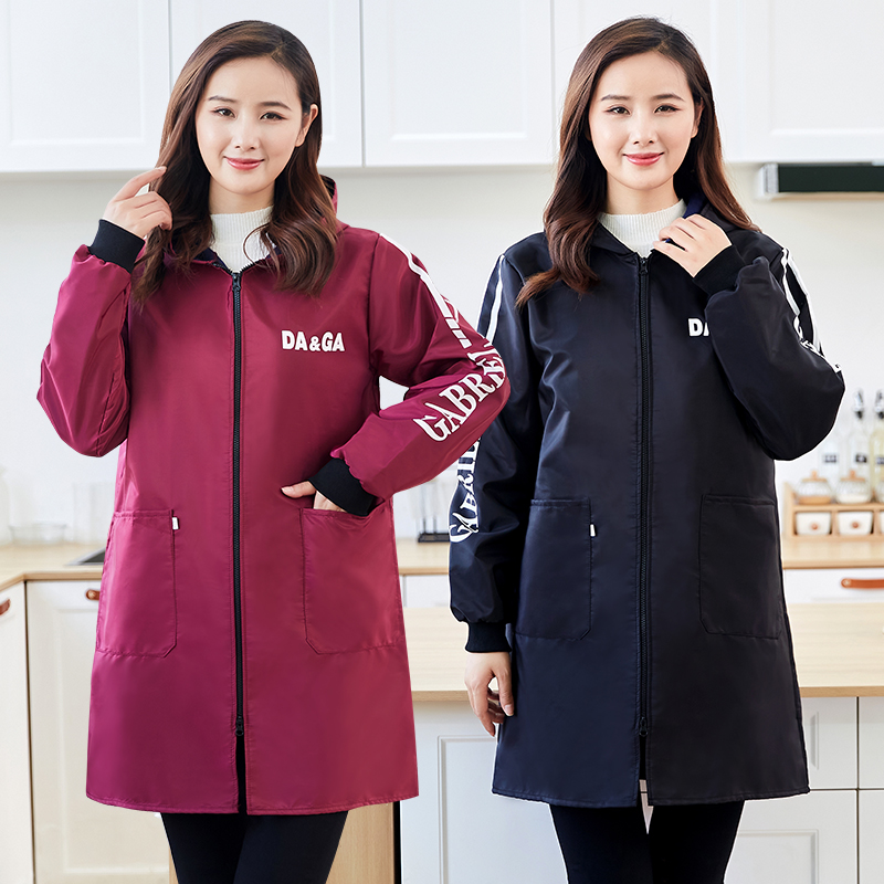 新款 女加厚工作服冬季 围裙加绒罩衣大人家用厨房防水防油时尚 长袖