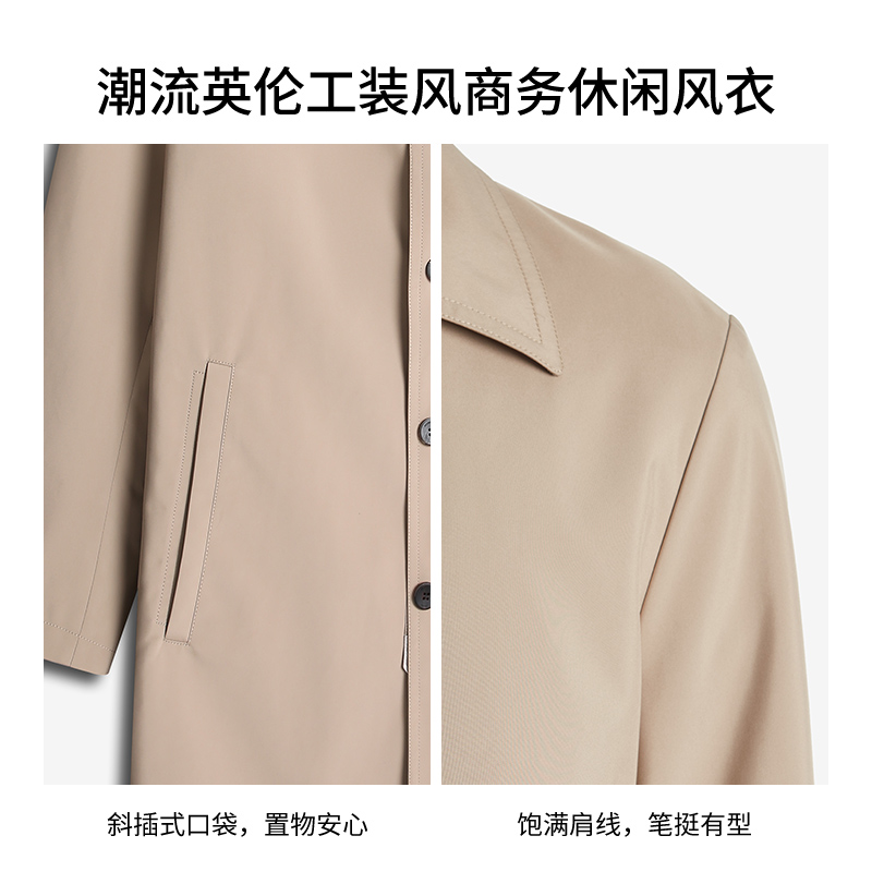 男士 夹克外套加绒加厚休闲男装 风衣中长款 潮流秋冬季 衣服 韩版 秋装