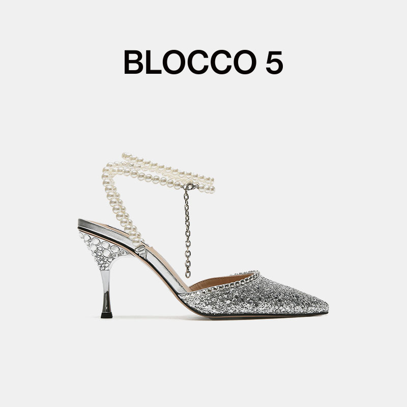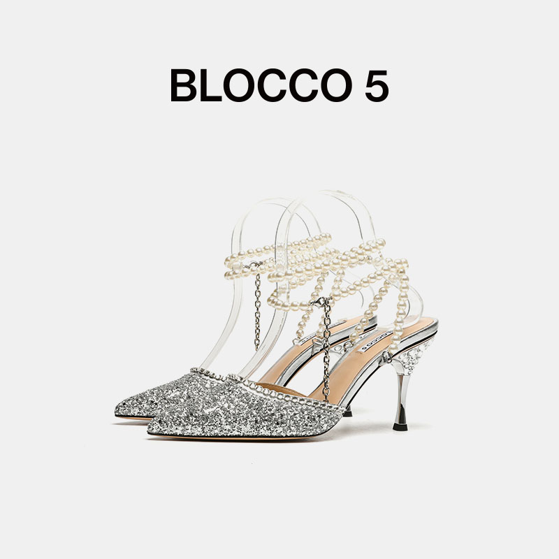休闲亮片细高跟鞋 珍珠绑带时尚 尖头水晶婚鞋 BLOCCO5夏季