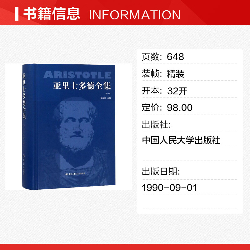 第1卷 书籍 中国人民大学出版 正版 新华书店旗舰店文轩官网 社 亚里士多德全集