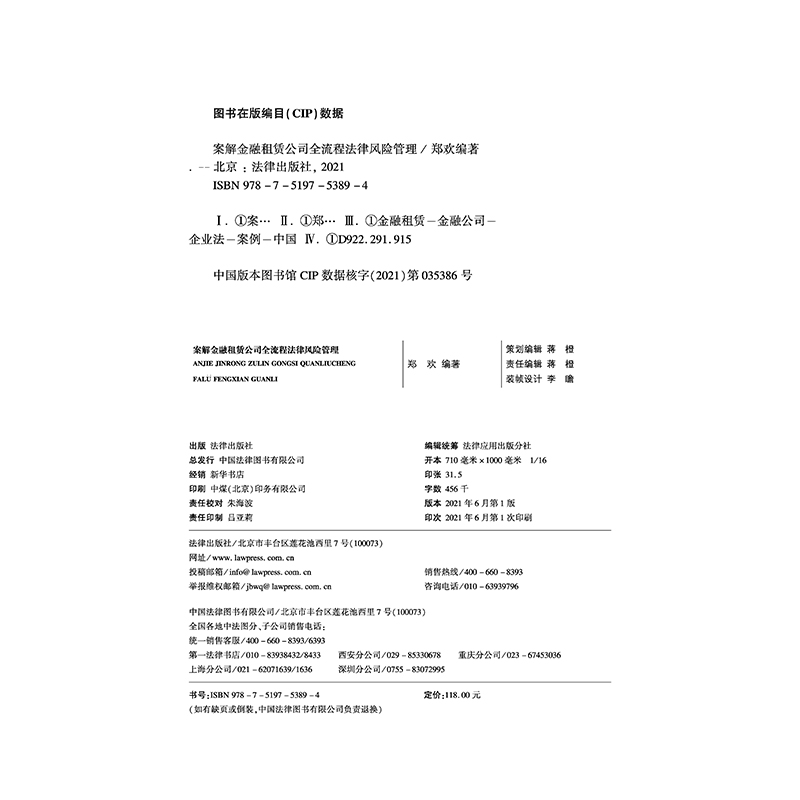 法律出版 郑欢 社 9787519753894 金融租赁行业经验风险控制 2021新 金融租赁案例实务 案解金融租赁公司全流程法律风险管理