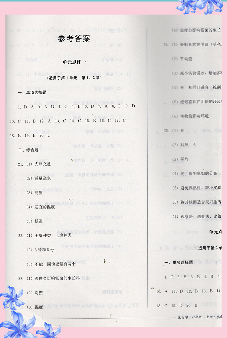 学情点评 七年级上册生物学 课堂伴侣 2024秋 四川教育出版 北师大版 7年级上册生物学 社 四川专用