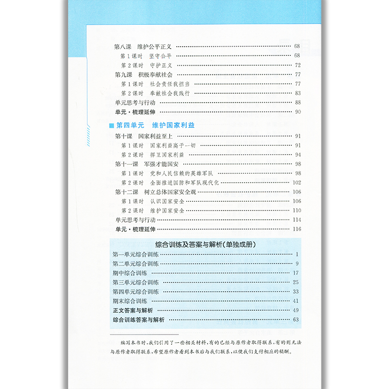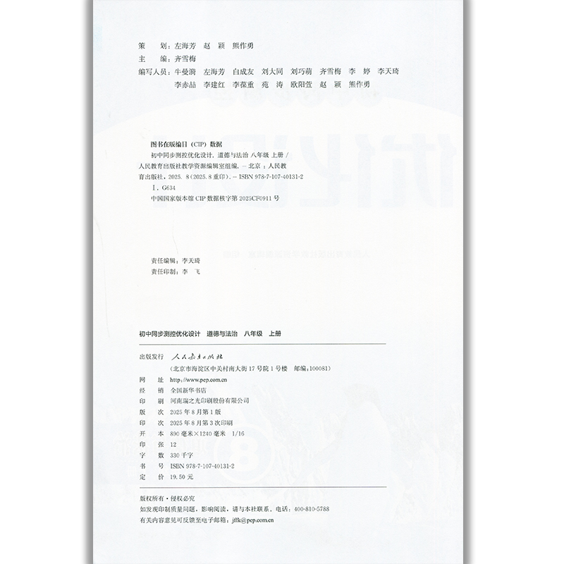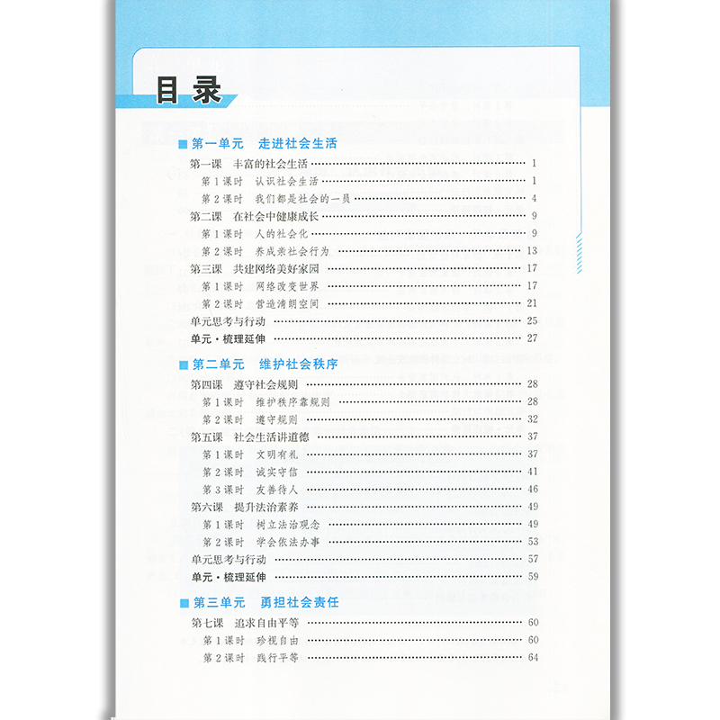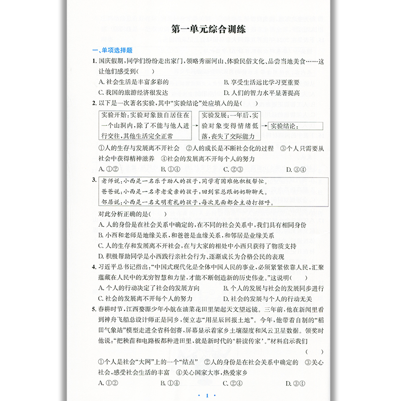 初中初二八年级上册政治同步测控教辅资料书 含答案 2025人教版 初中同步测控优化设计道德与法治八年级上册练习题课堂练习
