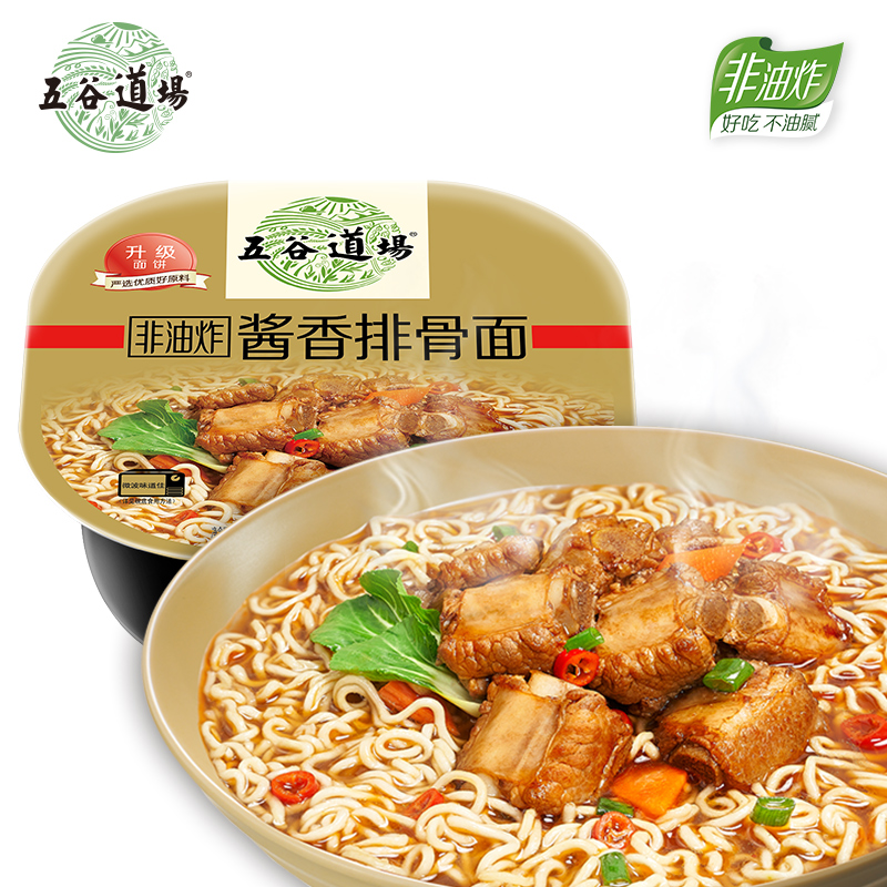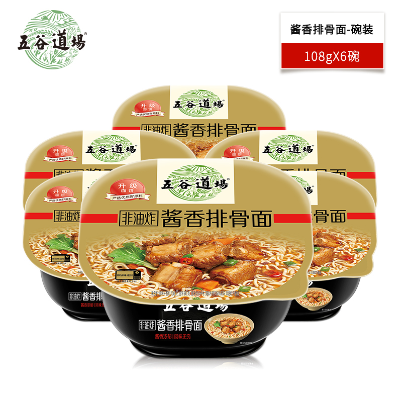 五谷道场非油炸方便面桶装 泡面 整箱批发酱香排骨面速食食品6盒装