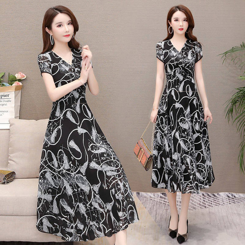 COCOBELLA简约气质黑色收腰极简风连衣裙女优雅短袖 长裙FR3033