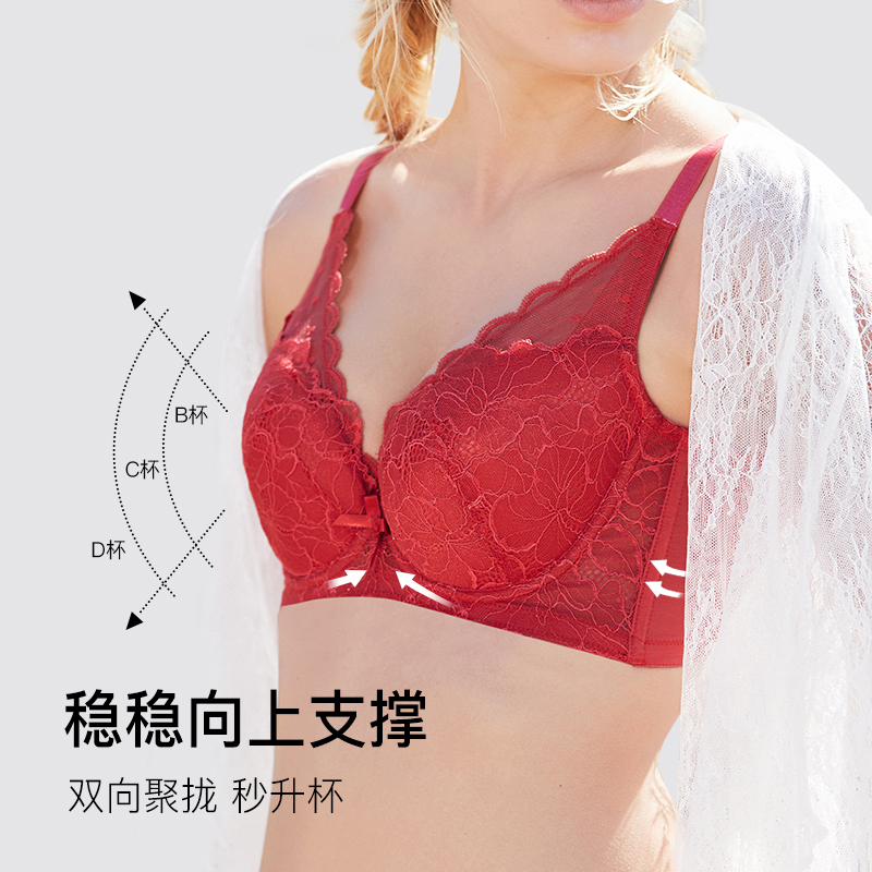 内衣缎面聚拢性感无钢圈文胸罩套装 虞书欣同款 ubras王妃蕾丝法式