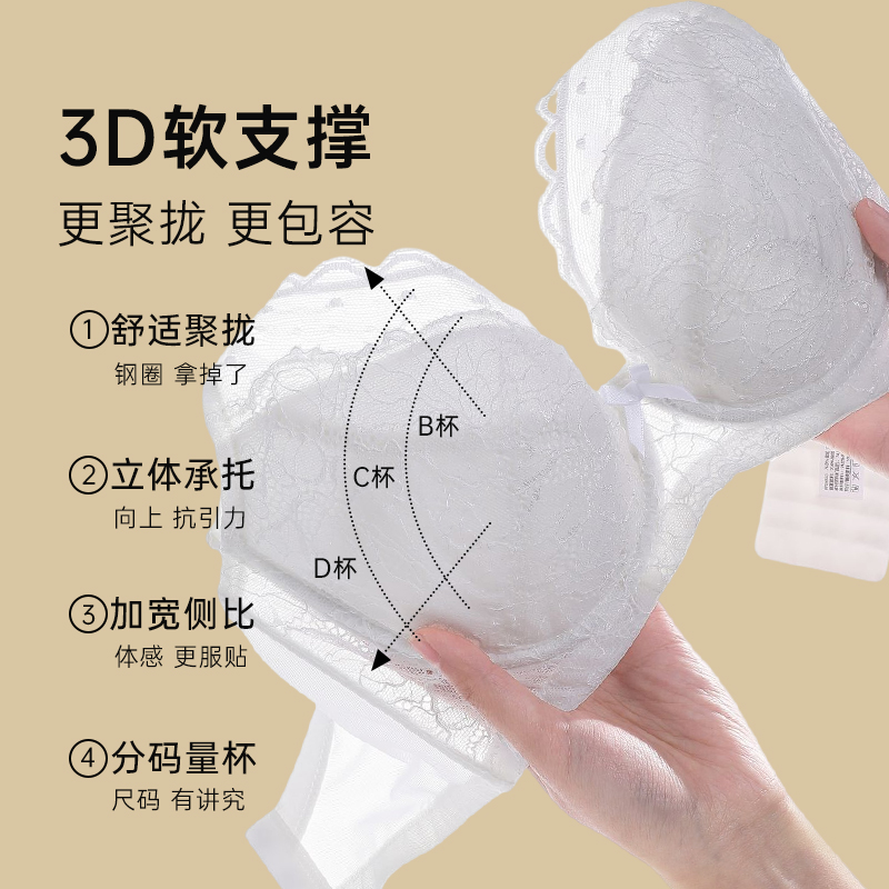 虞书欣同款 ubras由彼力挺杯小胸聚拢显大无痕收副乳文胸罩内衣女