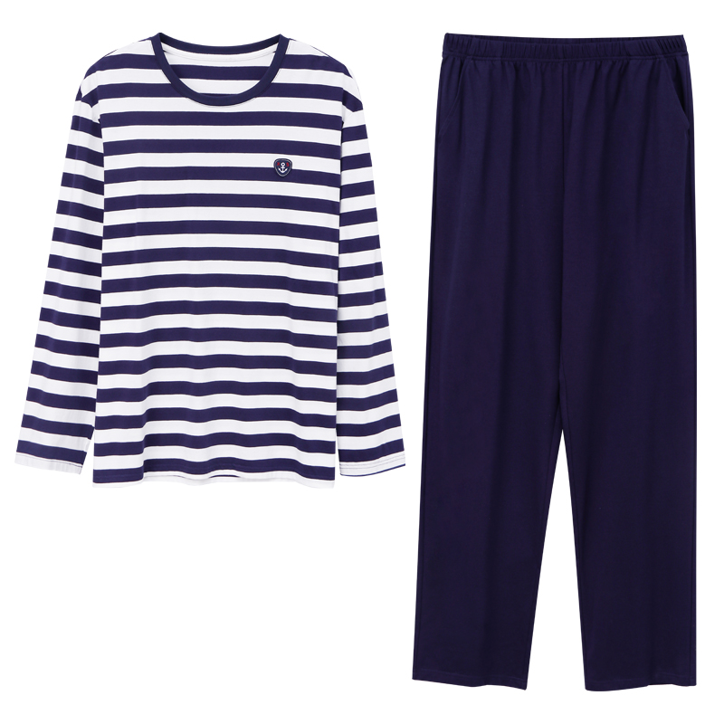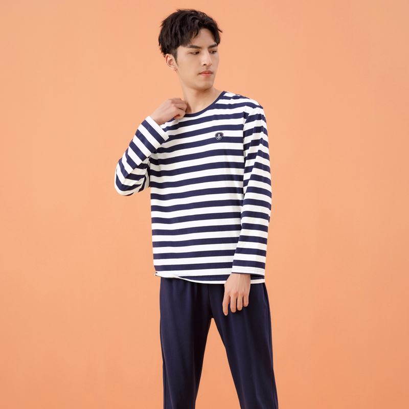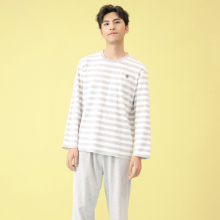 套装 宽松家居服休闲条纹男大码 柔软棉长袖 贝妍情侣睡衣女春秋新款