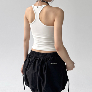 内搭 上衣西装 带胸垫春夏吊带背心女白色外穿字母印花短款 运动无袖