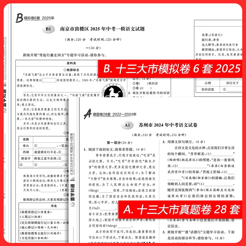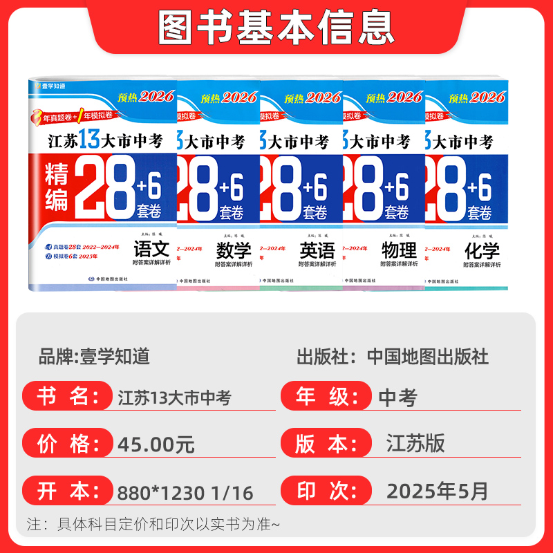壹学知道备考中考真题卷2026江苏13大市试卷分类28套卷江苏版 语文数学英语物理化学政治历史江苏省十三市历年真题地理2025