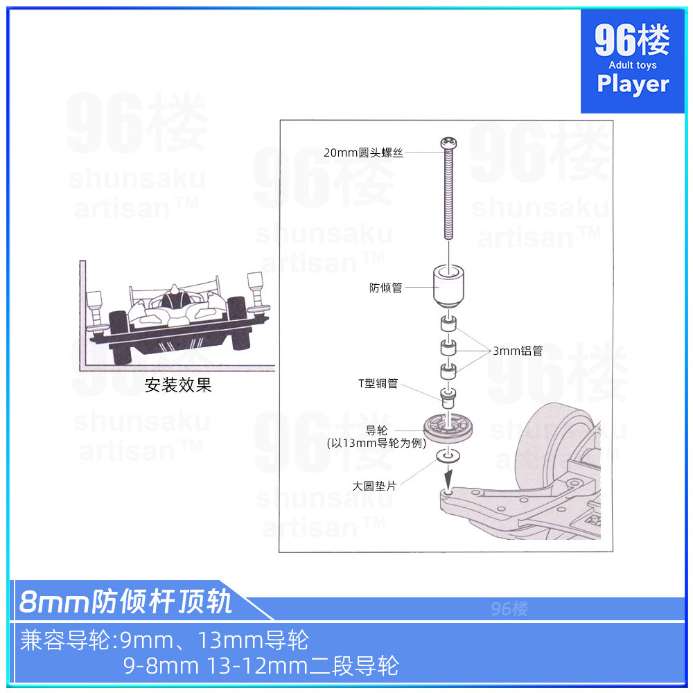 同15528 顶轨 96楼自制田宫四驱车配件 彩色8mm塑料导轮防倾
