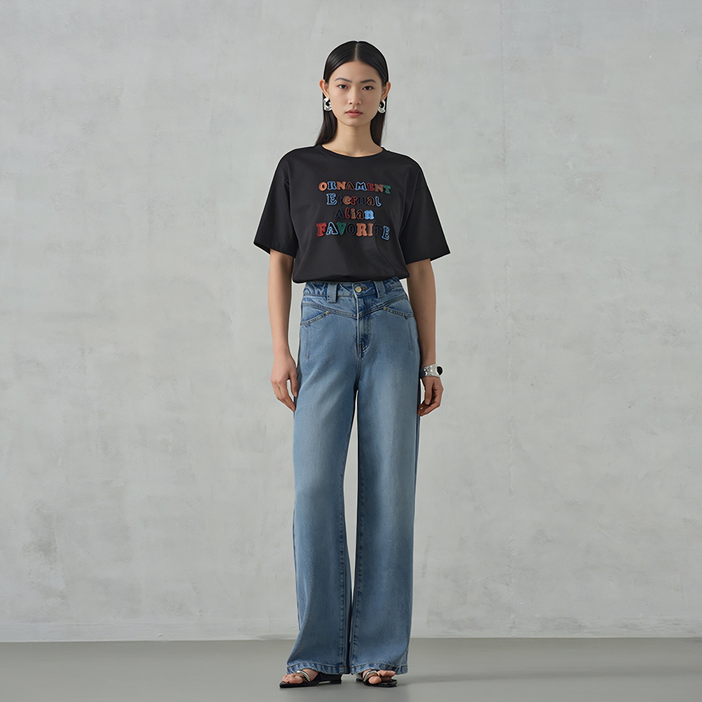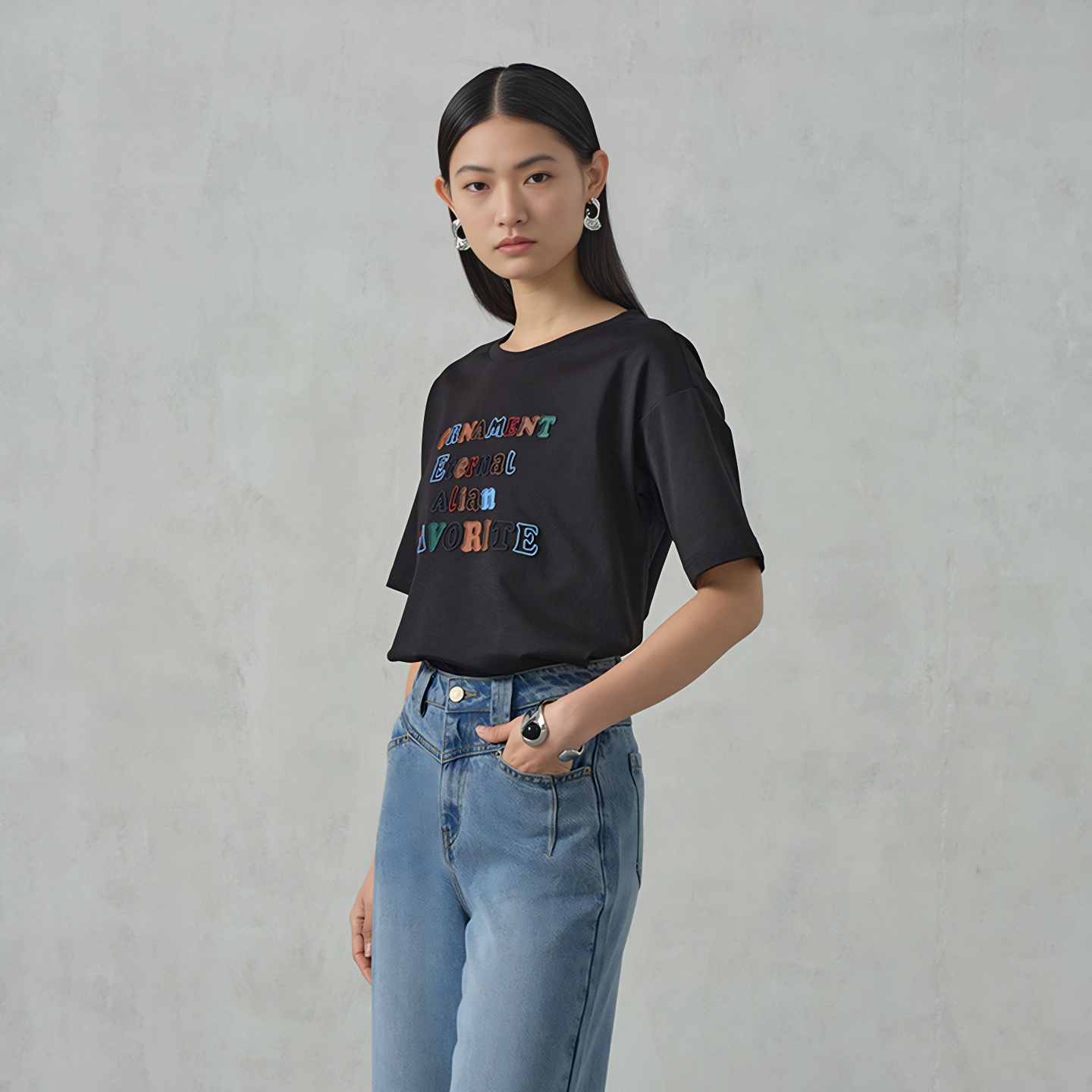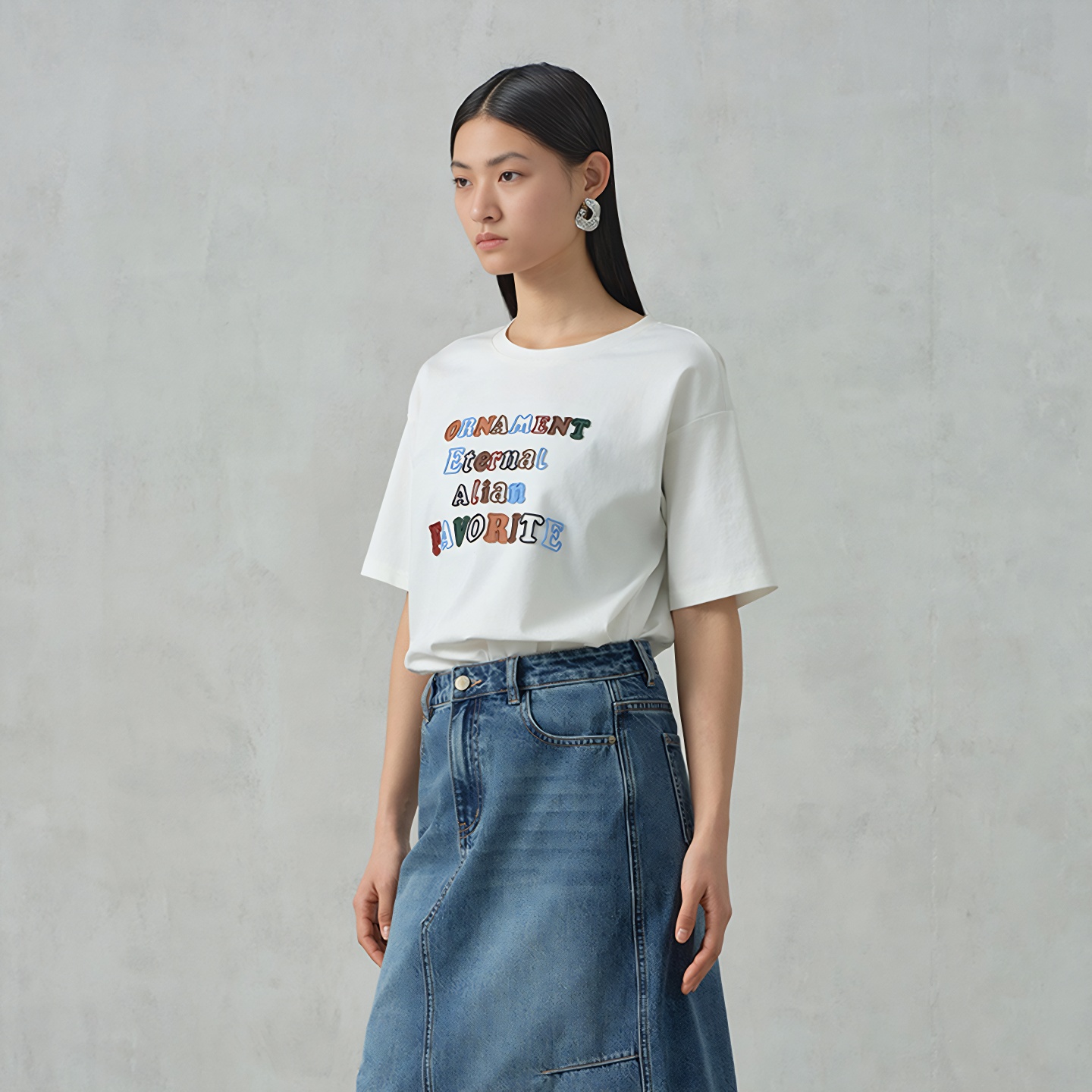 商场同款 新款 阿依莲时尚 T恤女2025夏季 独特别致上衣 流行短袖