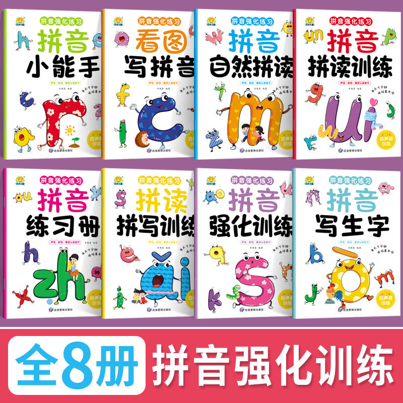 拼音强化练习全8册拼音小能手幼小衔接拼音读训练一年级零基础汉语拼音启蒙书幼小衔接幼儿园汉语拼音教材声母韵母初学者练习册DF