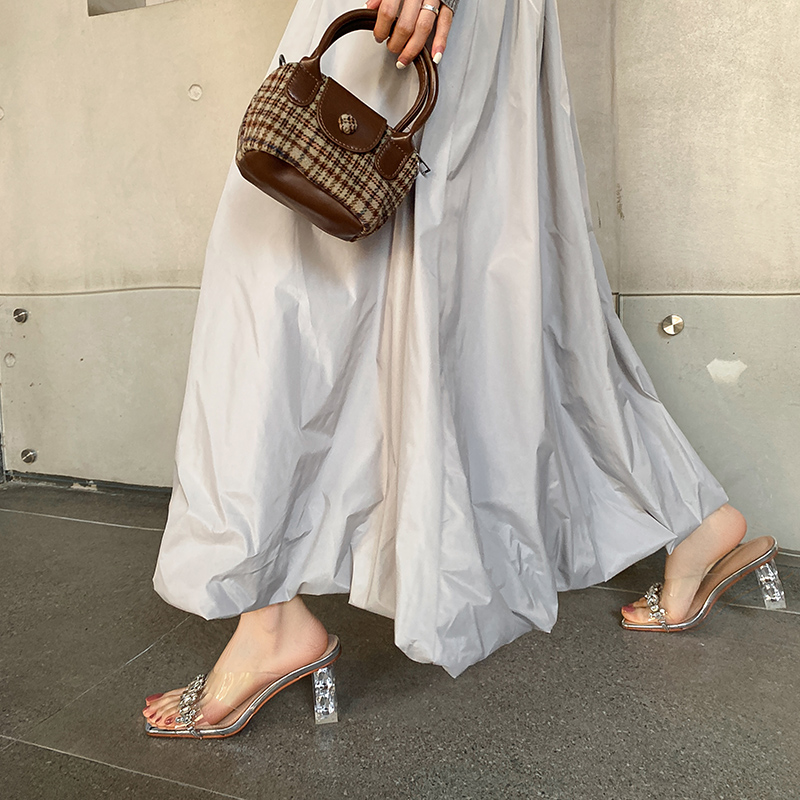 粗跟高跟一字带外穿拖鞋 女夏季 女 水钻晚晚仙女风透明凉鞋 2025新款