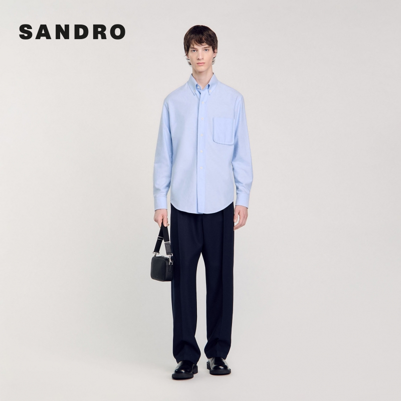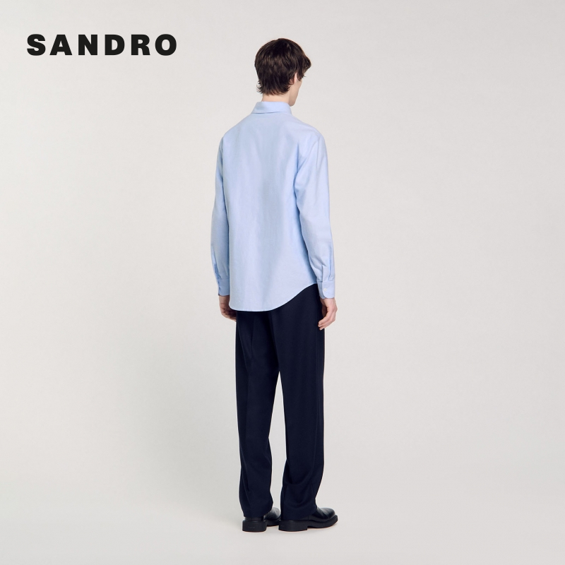 衬衫 SANDRO 通勤商务棉质蓝色翻领直筒长袖 法式 Outlets秋冬男装