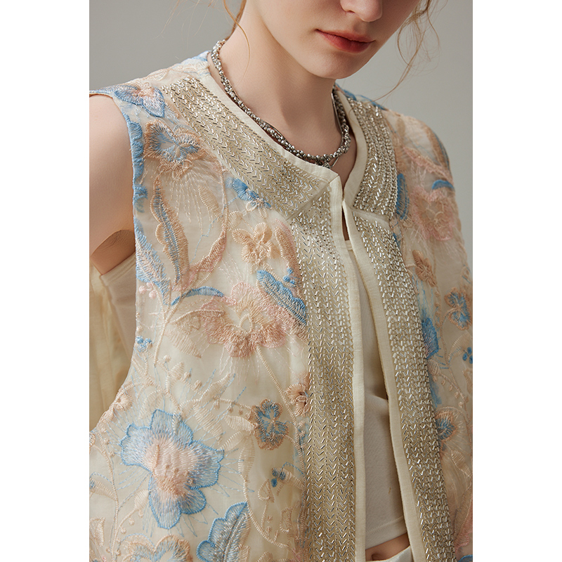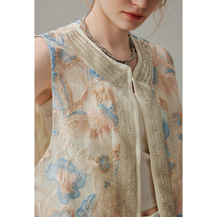 手工花开衫 宽松外穿马夹毛衣坎肩 v领针织马甲背心女2025秋冬新款