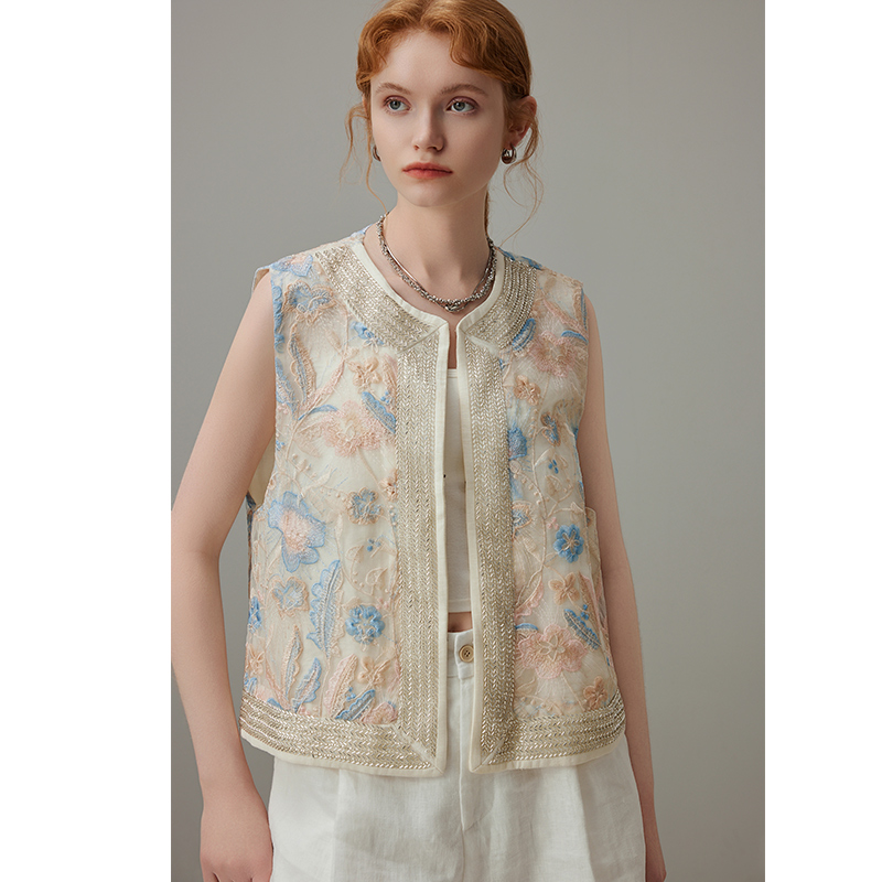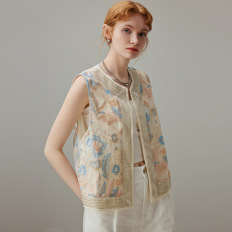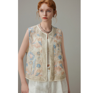 GUUKA费尔岛棉马甲男冬季 刺绣坎肩棉服女马夹保暖宽松 羊羔绒外套