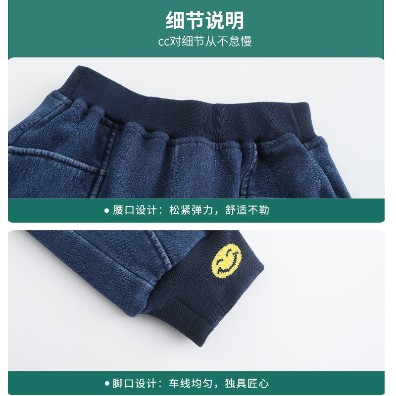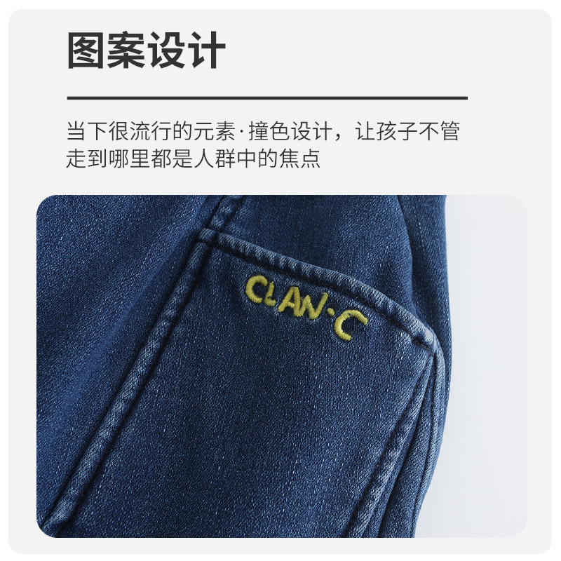 男童加绒牛仔裤 儿童休闲洋气加厚束脚长裤 24冬新款 clanc潮牌童装