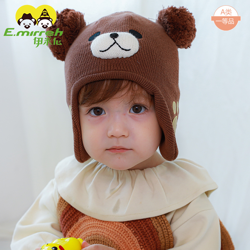 宝宝帽子秋冬季 可爱毛球套头帽婴幼儿针织毛线加厚护耳男女超萌潮