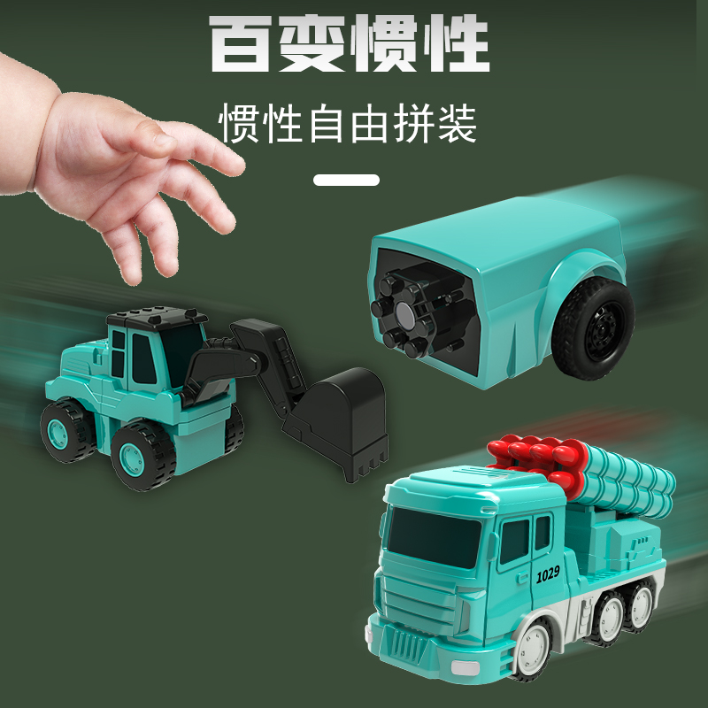 儿童磁力拼接玩具车男孩磁吸积木拼装 工程车6益智变形军事系套装