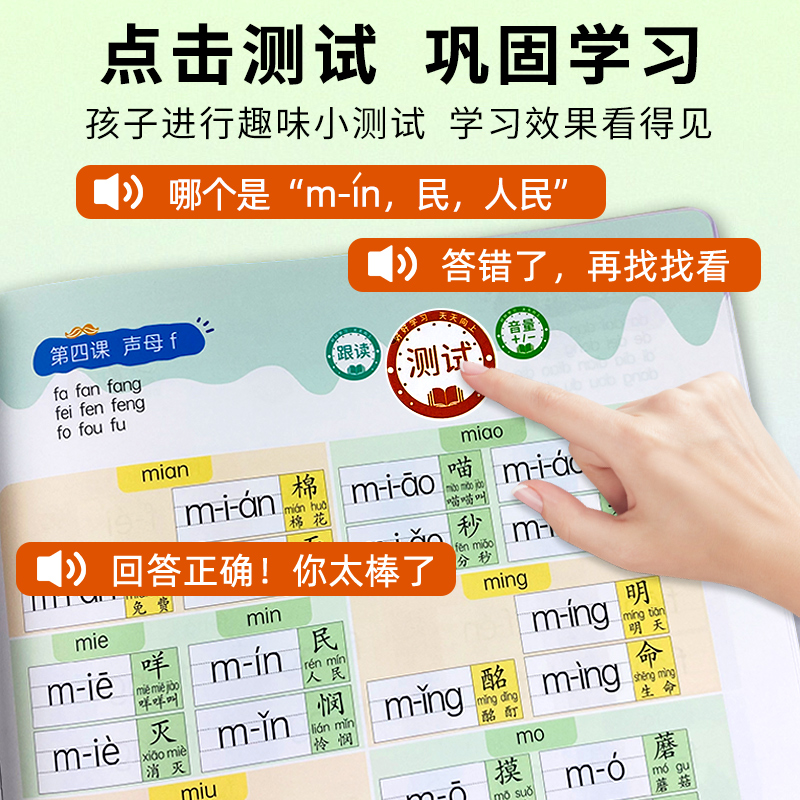 汉语拼音拼读训练手指点读发声书会说话 早教有声书幼小衔接儿童读物启蒙认知小能手一年级拼音专项训练小学语文学习神器点读机