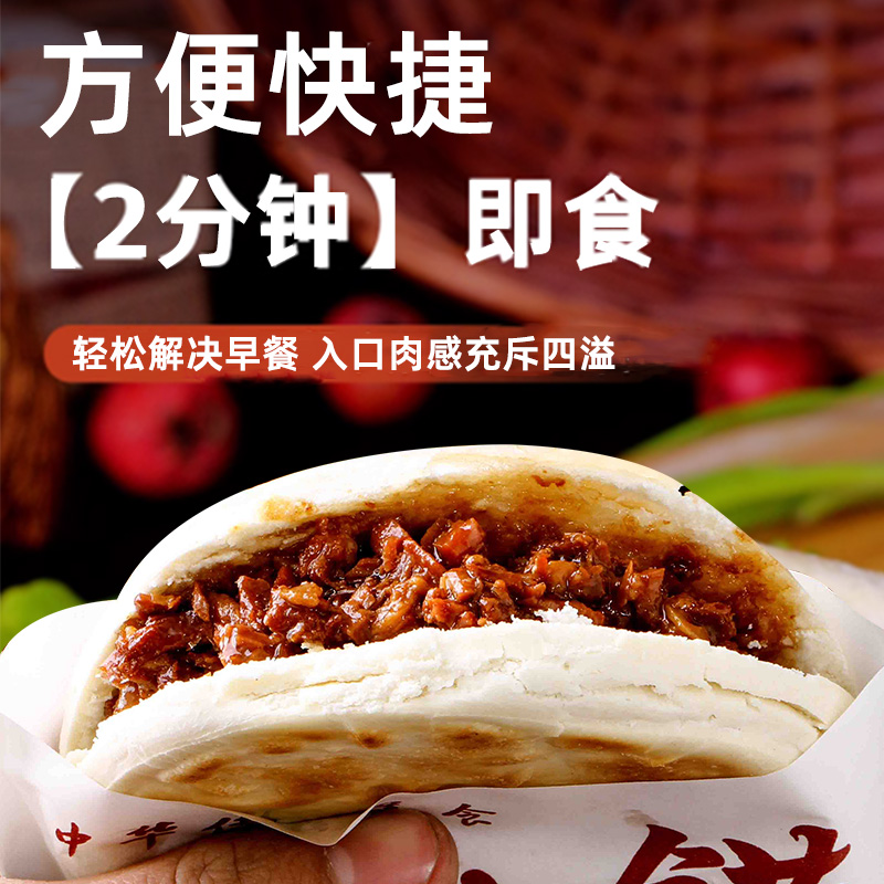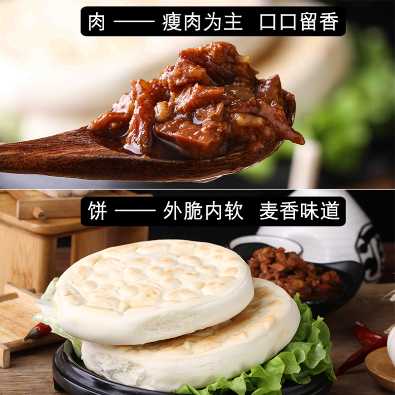 陕西腊汁肉夹馍饼西安特产早餐即食半成品方便速食袋装 白吉饼瘦肉